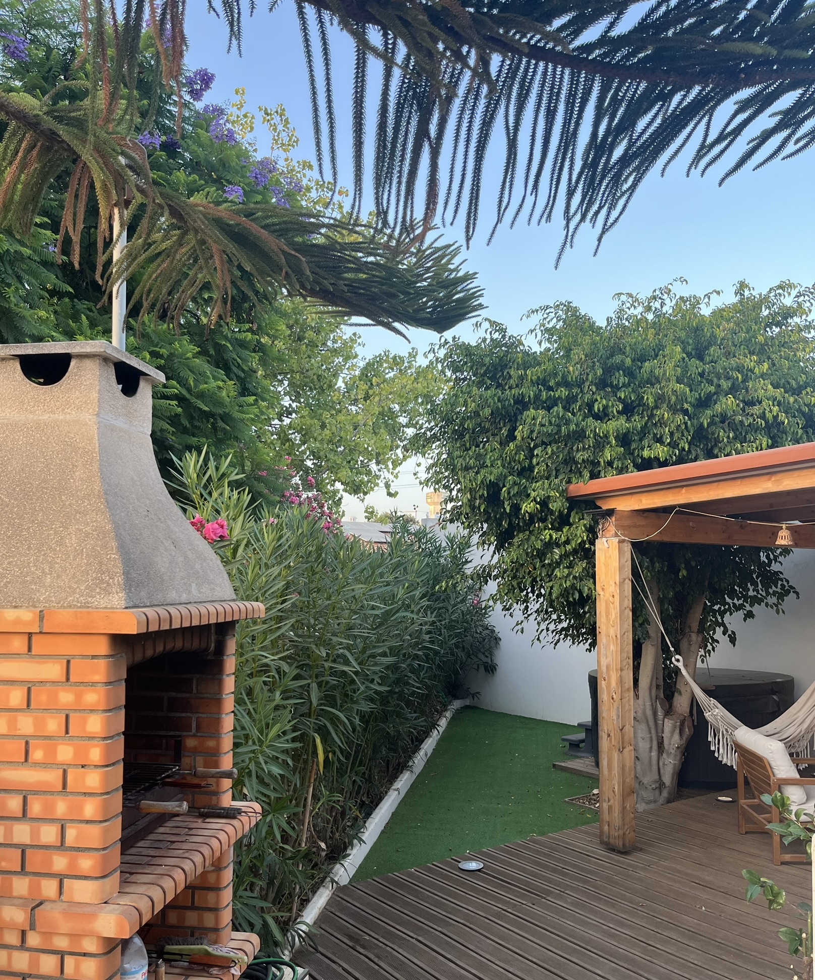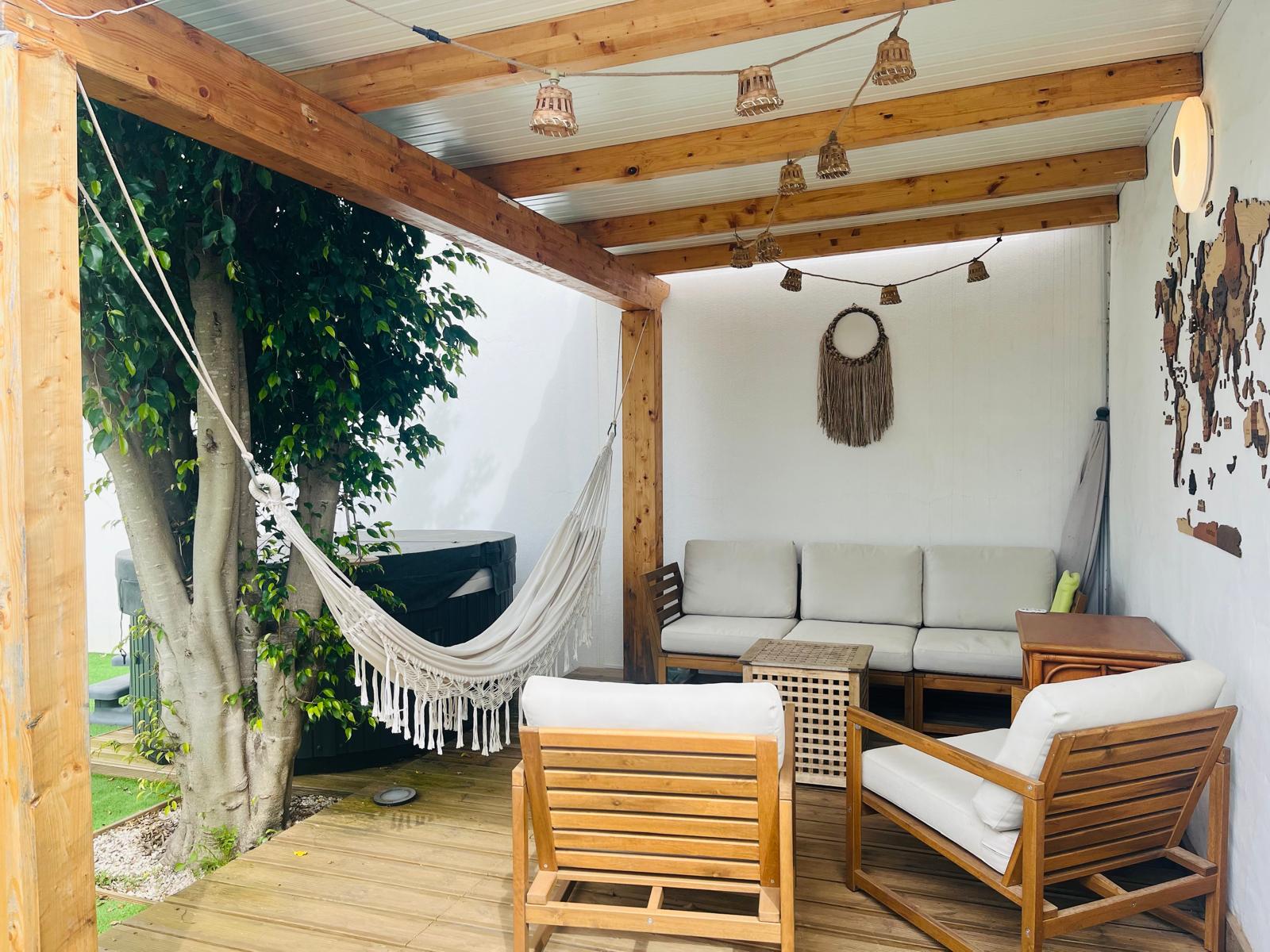 - Patio ombragé avec salon d’été et barbecue